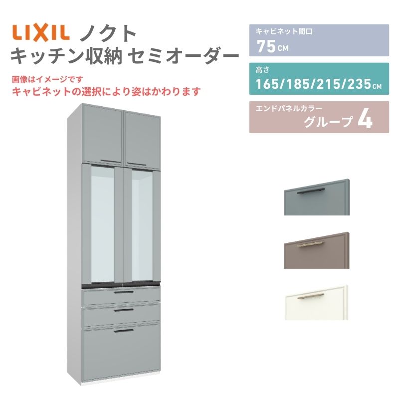 26年新モデル カップボード ノクト 食器棚 間口75cm 壁付型 トールタイプ 高さ235/215/185/165cm 奥行45cm W750mm おしゃれ リクシル グループ4