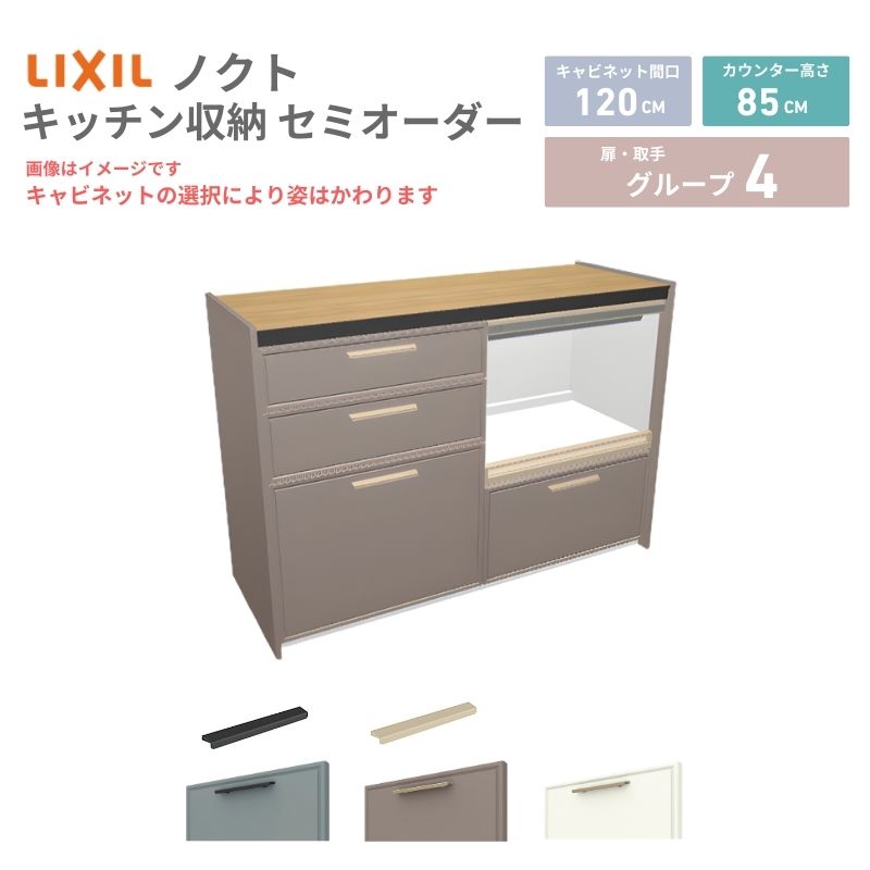 26年新モデル カップボード ノクト 食器棚 間口120cm(60+60)cm 壁付型 フロアキャビネット カウンター高さ85cm 奥行45cm W1200mm LIXIL リクシル グループ4