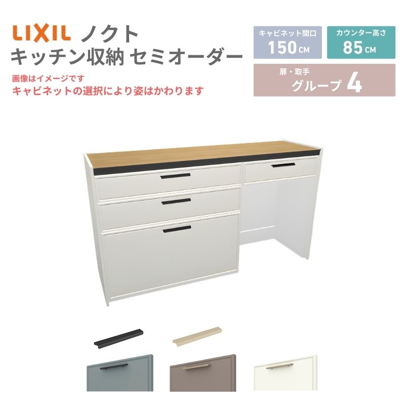 26年新モデル カップボード ノクト 食器棚 間口150cm(90+60)cm 壁付型 フロアキャビネット カウンター高さ85cm 奥行45cm W1500mm LIXIL リクシル グループ4