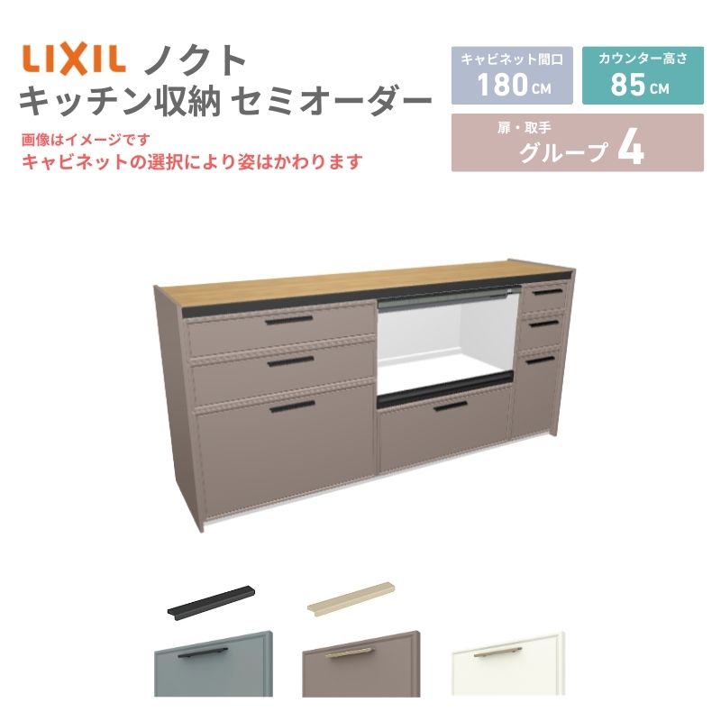 26年新モデル カップボード ノクト 食器棚 間口180cm(75+75+30)cm 壁付型 フロアキャビネット カウンター高さ85cm 奥行45cm W1800mm LIXIL リクシル グループ4