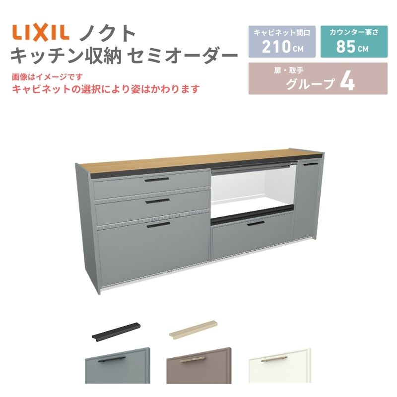 26年新モデル カップボード ノクト 食器棚 間口210cm(90+90+30)cm 壁付型 フロアキャビネット カウンター高さ85cm 奥行45cm W2100mm LIXIL リクシル グループ4