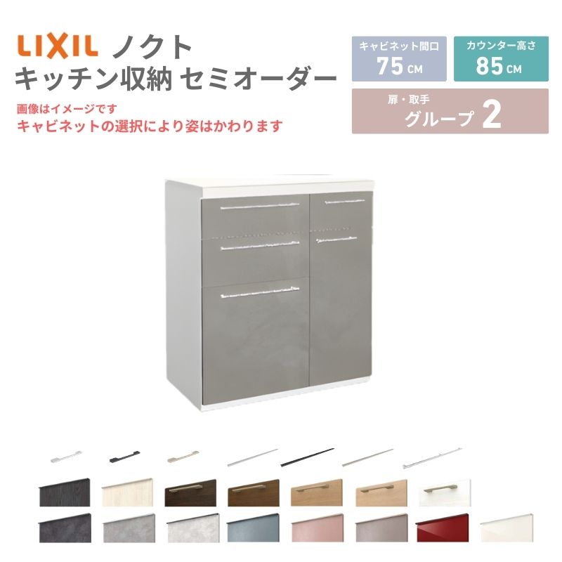 26年新モデル カップボード ノクト 食器棚 間口75cm(45+30)cm 壁付型 フロアキャビネット カウンター高さ85cm 奥行45cm W750mm LIXIL リクシル グループ2