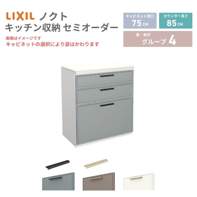 26年新モデル カップボード ノクト 食器棚 間口75cm(75)cm 壁付型 フロアキャビネット カウンター高さ85cm 奥行45cm W750mm LIXIL リクシル グループ4