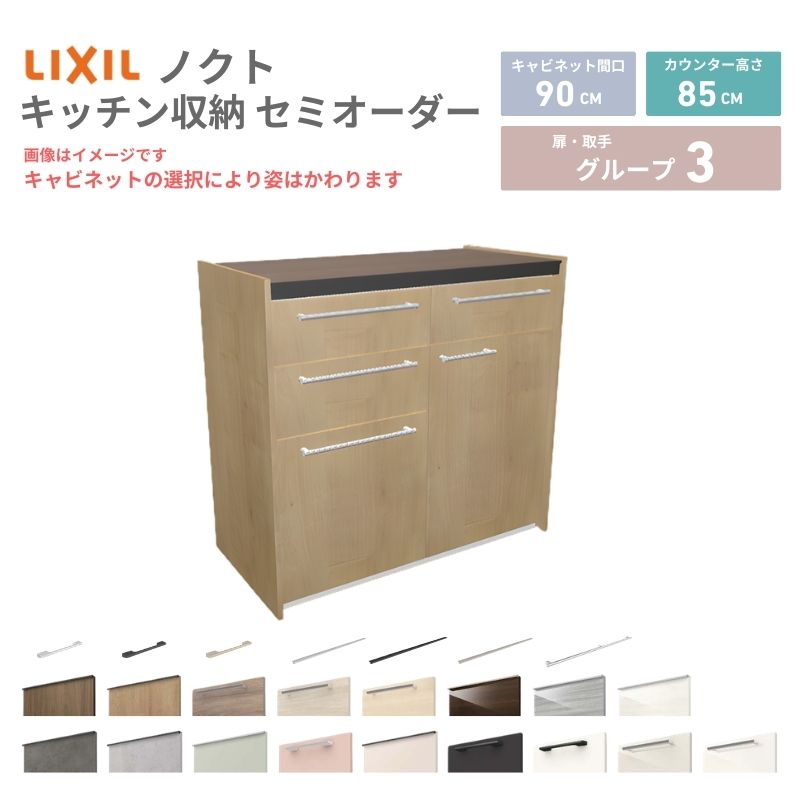 26年新モデル カップボード ノクト 食器棚 間口90cm(45+45)cm 壁付型 フロアキャビネット カウンター高さ85cm 奥行45cm W900mm LIXIL リクシル グループ3