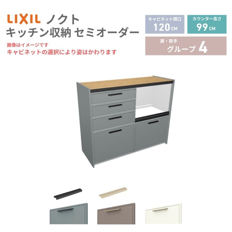 26年新モデル カップボード ノクト 食器棚 間口120cm(60+60)cm 壁付型 ハイフロアキャビネット カウンター高さ99cm 奥行45cm W1200mm LIXIL リクシル グループ4