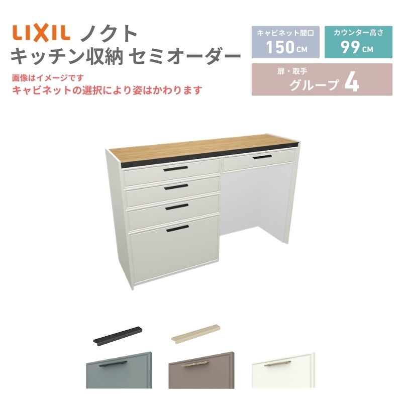 26年新モデル カップボード ノクト 食器棚 間口150cm(75+75)cm 壁付型 ハイフロアキャビネット カウンター高さ99cm 奥行45cm W1500mm LIXIL リクシル グループ4