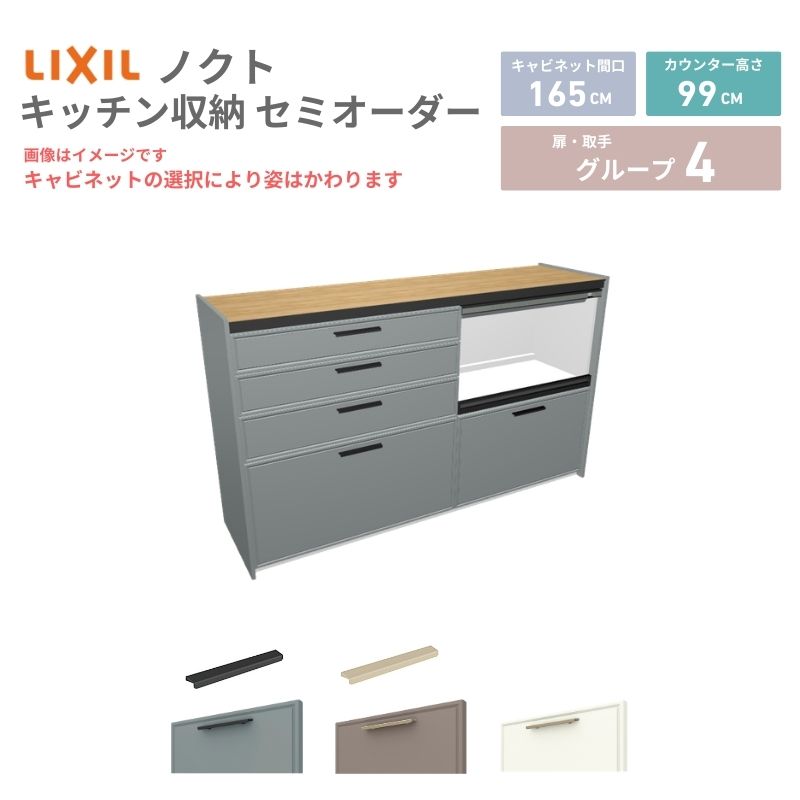 26年新モデル カップボード ノクト 食器棚 間口165cm(90+75)cm 壁付型 ハイフロアキャビネット カウンター高さ99cm 奥行45cm W1650mm LIXIL リクシル グループ4