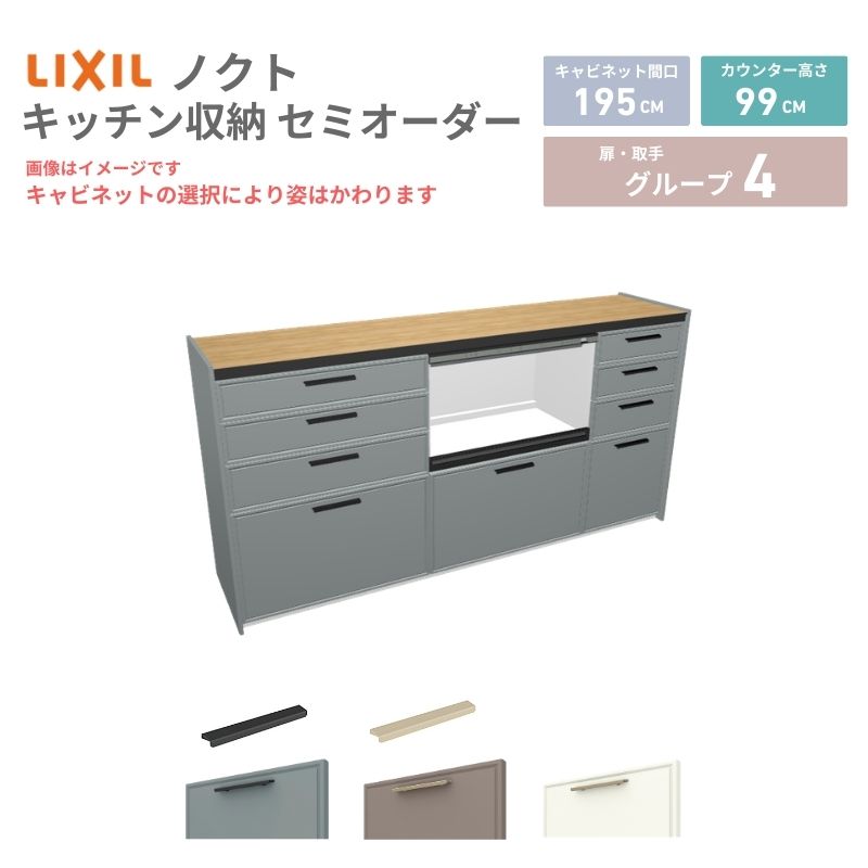 26年新モデル カップボード ノクト 食器棚 間口195cm(75+75+45)cm 壁付型 ハイフロアキャビネット カウンター高さ99cm 奥行45cm W1950mm リクシル グループ4