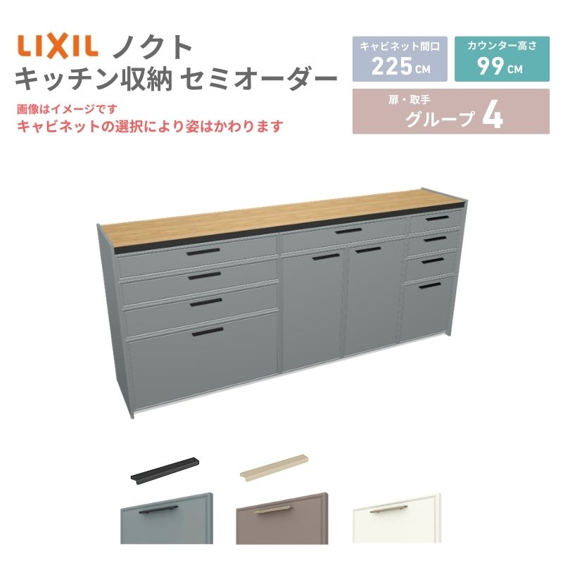 26年新モデル カップボード ノクト 食器棚 間口225cm(90+90+45)cm 壁付型 ハイフロアキャビネット カウンター高さ99cm 奥行45cm W2250mm リクシル グループ4