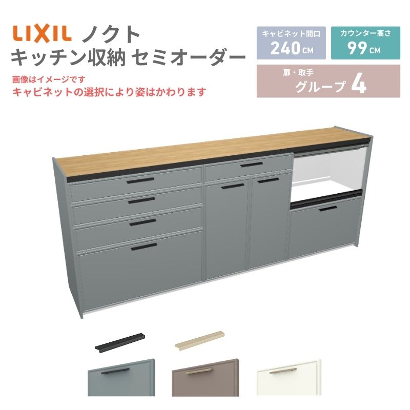 26年新モデル カップボード ノクト 食器棚 間口240cm(90+75+75)cm 壁付型 ハイフロアキャビネット カウンター高さ99cm 奥行45cm W2400mm リクシル グループ4