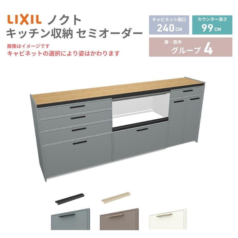 26年新モデル カップボード ノクト 食器棚 間口240cm(90+90+60)cm 壁付型 ハイフロアキャビネット カウンター高さ99cm 奥行45cm W2400mm リクシル グループ4