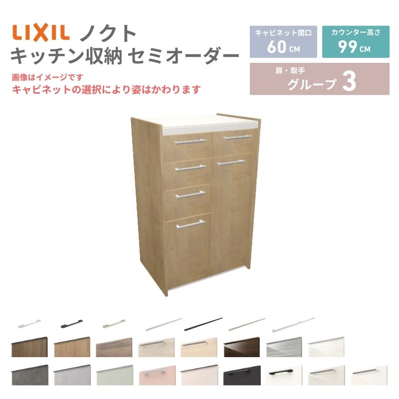 26年新モデル カップボード ノクト 食器棚 間口60cm(30+30)cm 壁付型 ハイフロアキャビネット カウンター高さ99cm 奥行45cm W600mm LIXIL リクシル グループ3