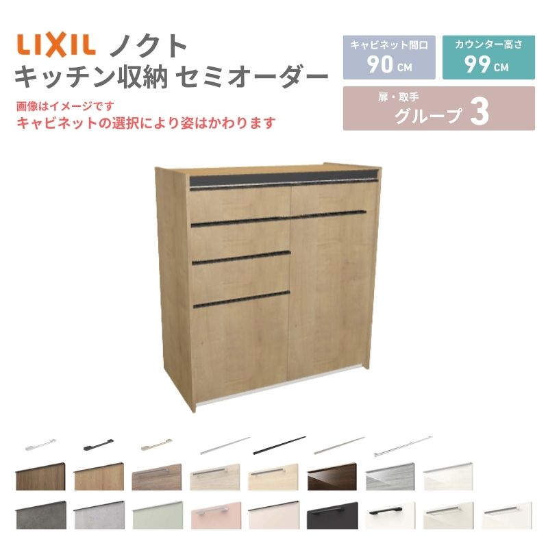 26年新モデル カップボード ノクト 食器棚 間口90cm(45+45)cm 壁付型 ハイフロアキャビネット カウンター高さ99cm 奥行45cm W900mm LIXIL リクシル グループ3