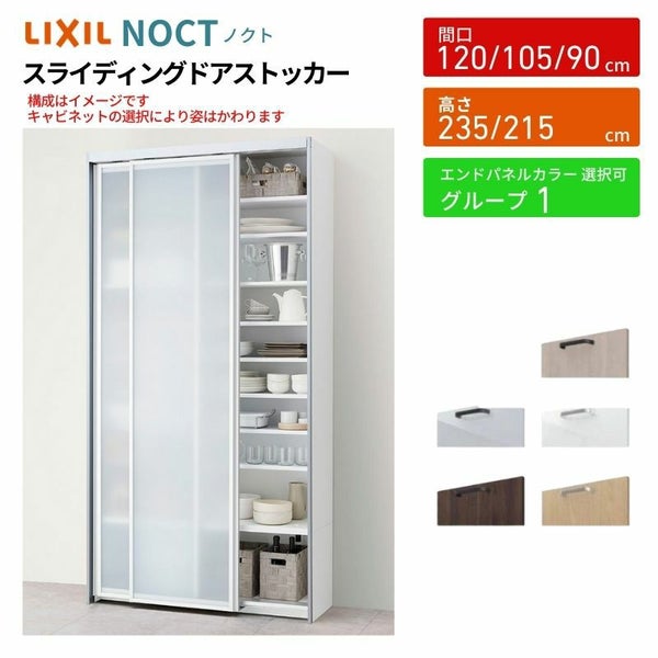 ノクト/シエラ 食器棚 スライディングドアストッカー 間口90/105/120cm 奥行45cm 高さ215/235cm リクシル 引き戸 LIXIL キッチン収納 トールタイプ グループ1