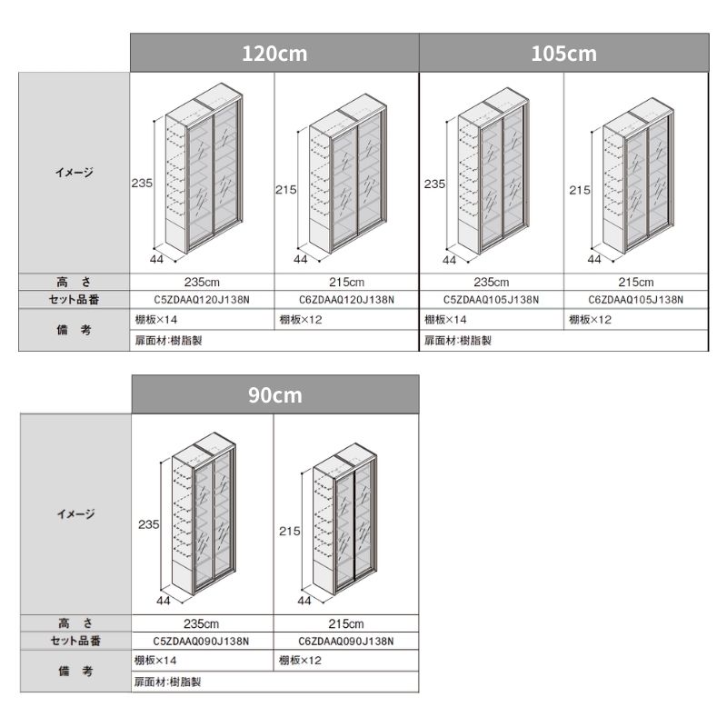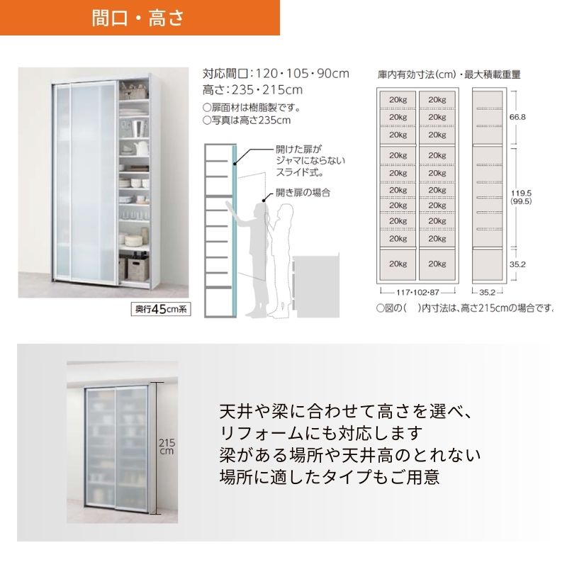 寸法:間口90/105/120cm×高さ215/235cm ×奥行45cm
