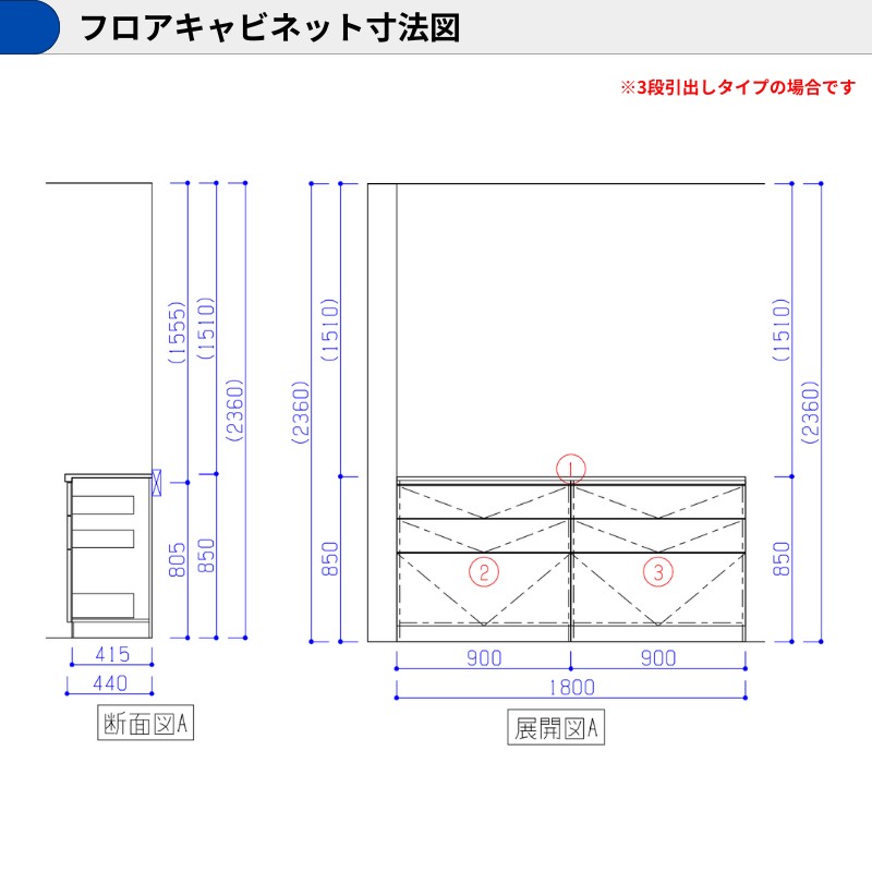 当プランはオプションでキャビネットの種類や構成などお好みの仕様に自由に選択できる収納プランです。