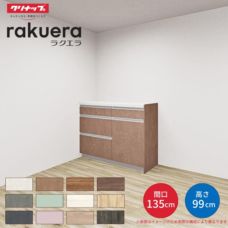 カップボード 1350 クリナップ 食器棚 ロータイプ 2キャビネット カップボード ラクエラ 間口135cm(75+60cm) ハイフロアカウンター キッチンボード カウンター高さ99cm 奥行45cm W1350mm クリナップ コンフォート 食器棚