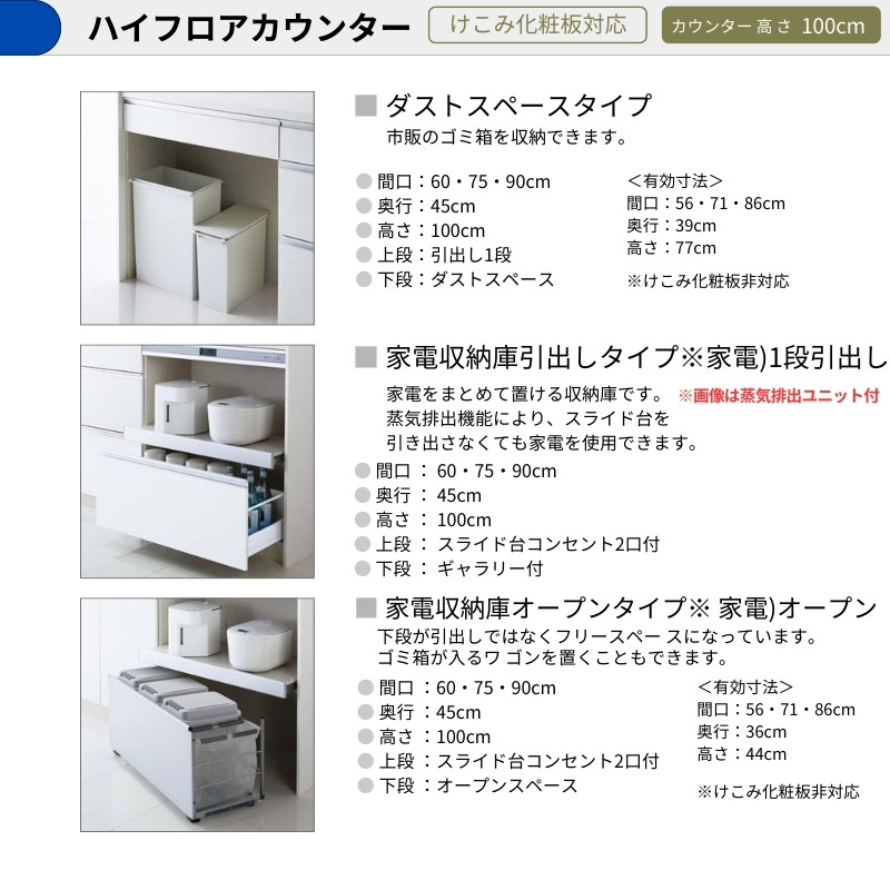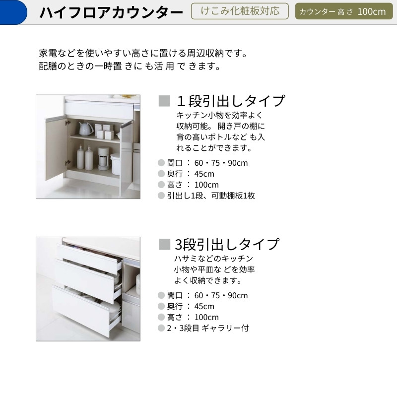 カップボード ラクエラ 間口90cm ハイフロアカウンター キッチンボード カウンター高さ99cm 奥行45cm W900mm クリナップ シンシア 食器棚 一人暮らし