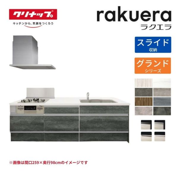システムキッチン ラクエラ W2440mm フラット対面I型ペニンシュラ スライド収納プラン グランド TUシンク 3口コンロ 標準タイプ(食洗機なし) クリナップ 間口244cm ステンレス キッチン おしゃれ 引出し 大容量 下台 流し台 リフォーム リノベ DIY