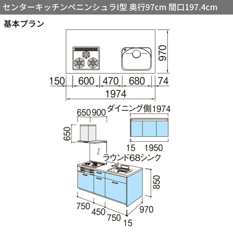 システムキッチン 流し台 本体 LIXIL 安い リフォーム おしゃれ システムキッチン リクシル シエラS センターキッチン ペニンシュラI型 基本プラン 食器洗い乾燥機付 W1974mm 間口197.4cm 奥行75/97cm グループ1 流し台 おしゃれ 可愛い システムキッチン セミオーダー リフォーム DIY