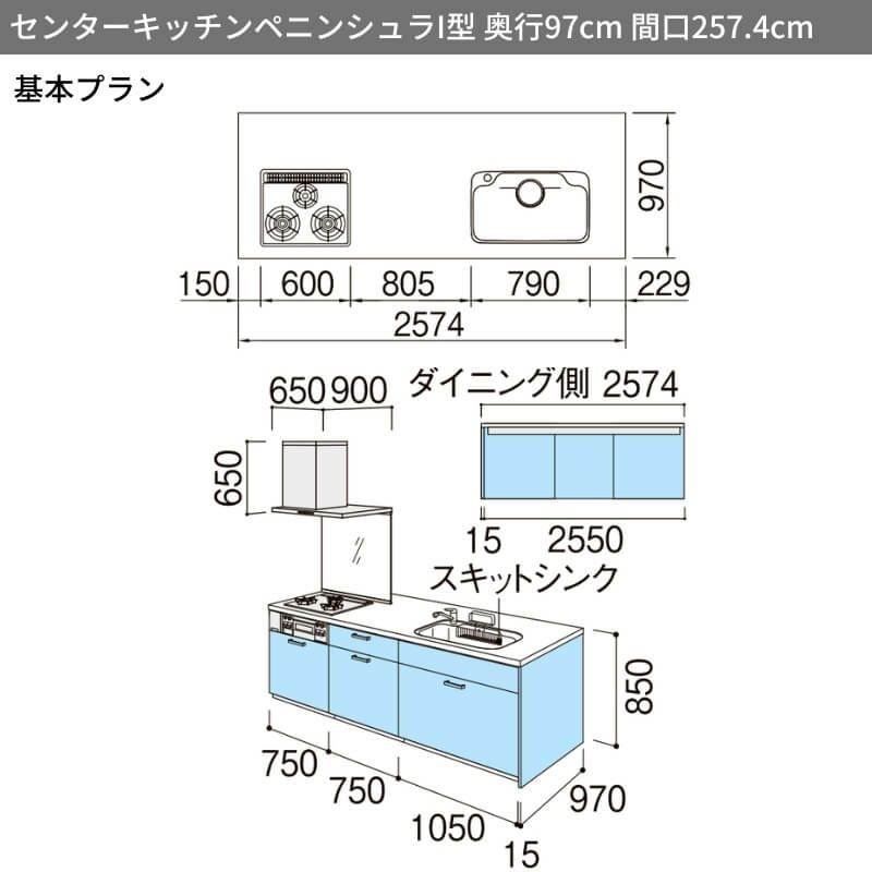システムキッチン 流し台 本体 LIXIL 安い リフォーム おしゃれ システムキッチン リクシル シエラS センターキッチン ペニンシュラI型 基本プラン 食器洗い乾燥機なし W2574mm 間口257.4cm 奥行75/97cm グループ2 流し台 おしゃれ 可愛い システムキッチン セミオーダー リフォーム DIY