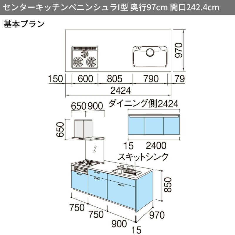 システムキッチン 流し台 本体 LIXIL 安い リフォーム おしゃれ システムキッチン リクシル シエラS センターキッチン ペニンシュラI型 基本プラン 食器洗い乾燥機なし W2424mm 間口242.4cm 奥行75/97cm グループ1 流し台 おしゃれ 可愛い システムキッチン セミオーダー リフォーム DIY