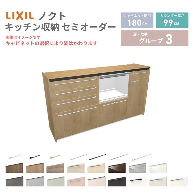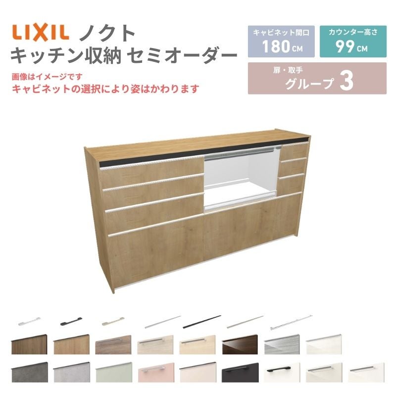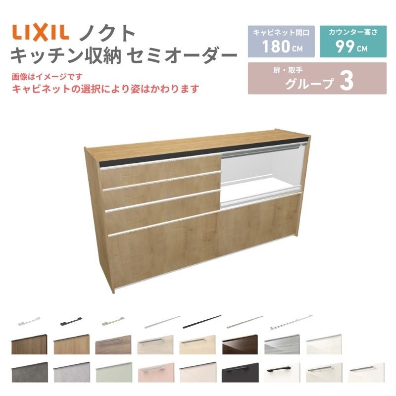 リクシル ノクト キッチン収納 キッチンカウンター 壁付型 爆買 26年新モデル カップボード ノクト 食器棚 間口180cm(75+75+30)cm 壁付型 ハイフロアキャビネット カウンター高さ99cm 奥行45cm W1800mm リクシル グループ3