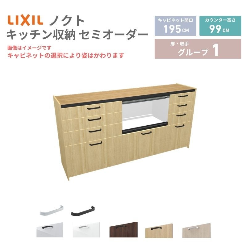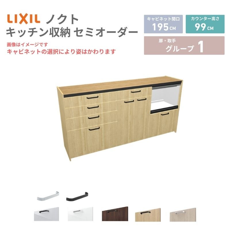 リクシル ノクト キッチン収納 キッチンカウンター 壁付型 爆買 26年新モデル カップボード ノクト 食器棚 間口195cm(75+75+45)cm 壁付型 ハイフロアキャビネット カウンター高さ99cm 奥行45cm W1950mm リクシル グループ1