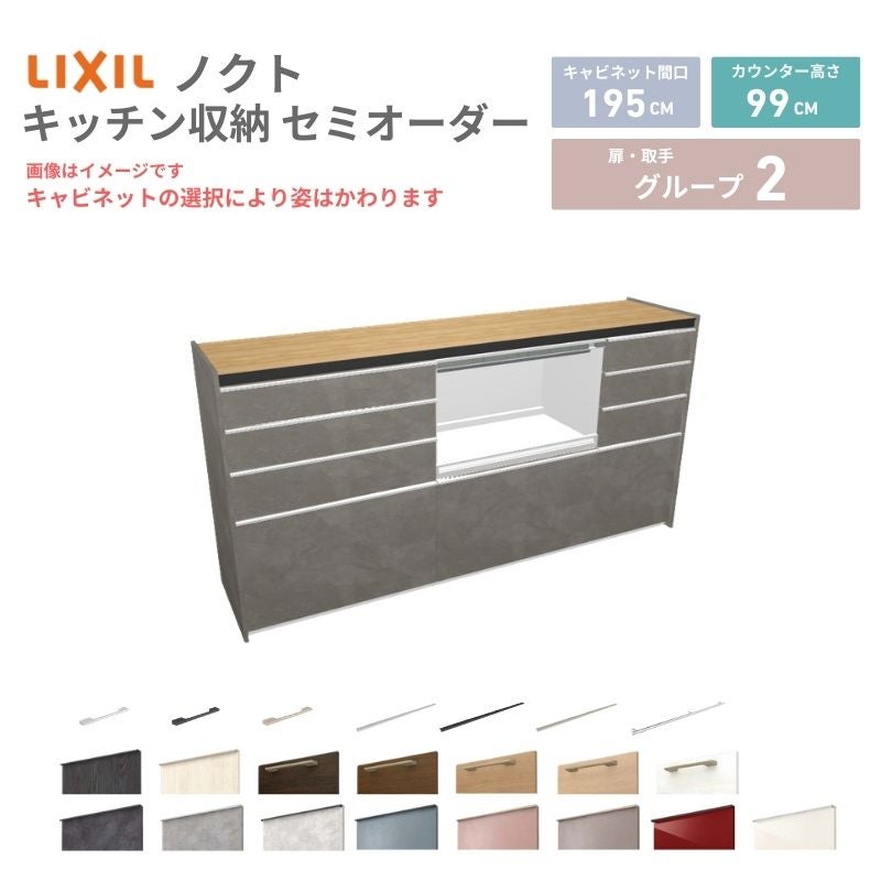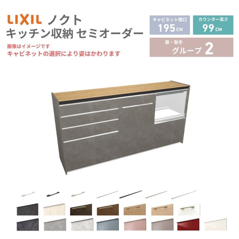 リクシル ノクト キッチン収納 キッチンカウンター 壁付型 爆買 26年新モデル カップボード ノクト 食器棚 間口195cm(75+75+45)cm 壁付型 ハイフロアキャビネット カウンター高さ99cm 奥行45cm W1950mm リクシル グループ2