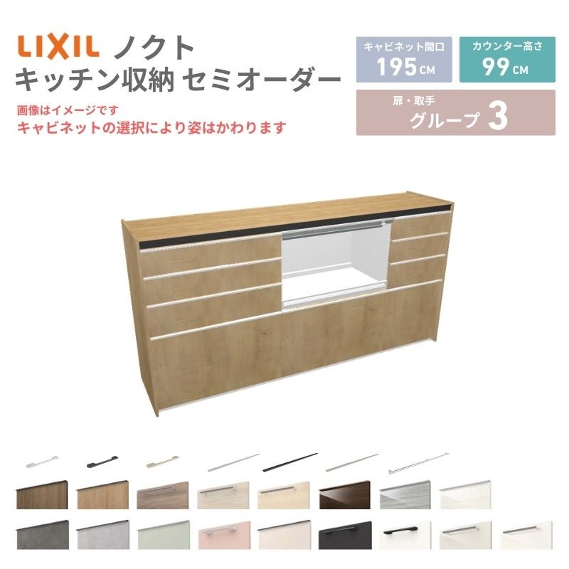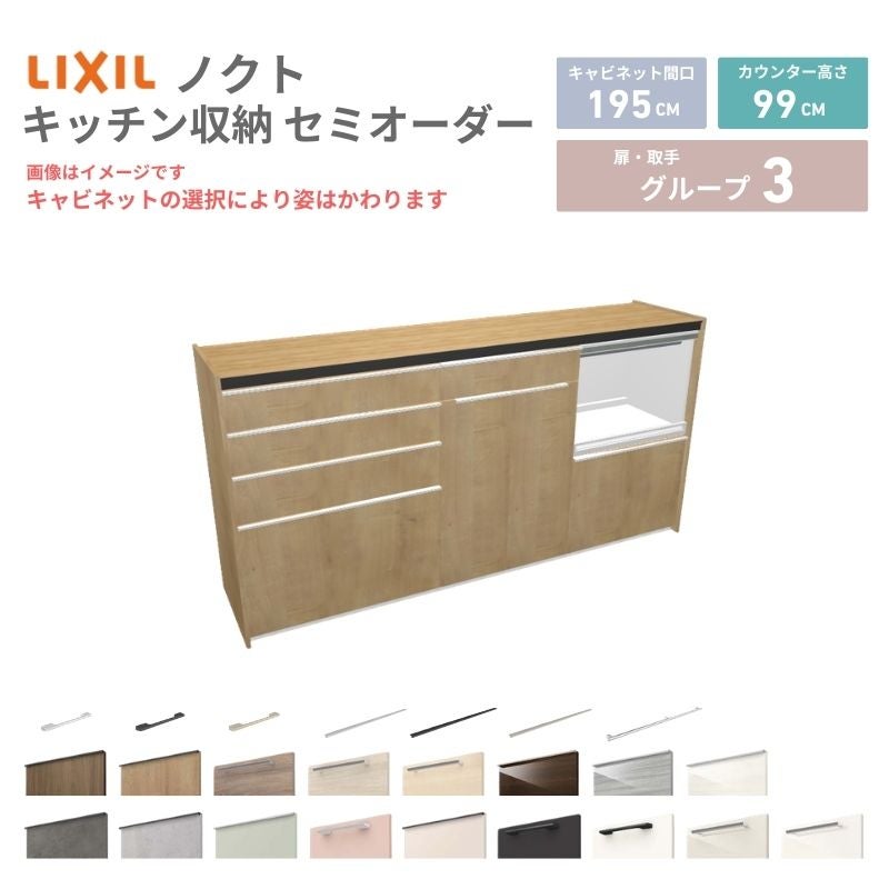 リクシル ノクト キッチン収納 キッチンカウンター 壁付型 爆買 26年新モデル カップボード ノクト 食器棚 間口195cm(75+75+45)cm 壁付型 ハイフロアキャビネット カウンター高さ99cm 奥行45cm W1950mm リクシル グループ3