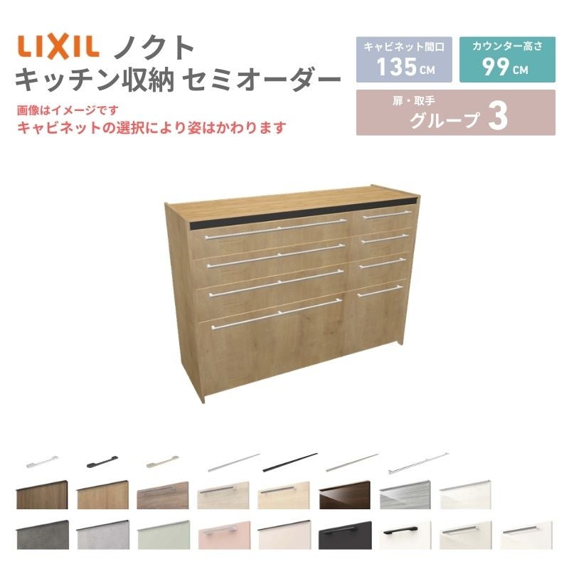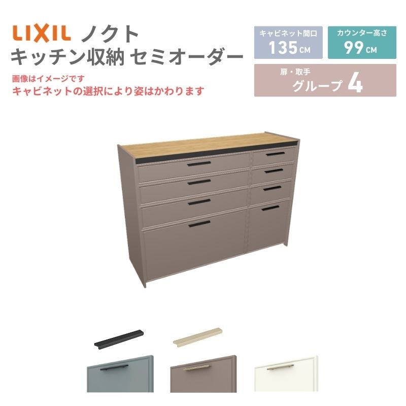 リクシル ノクト キッチン収納 キッチンカウンター 壁付型 爆買 26年新モデル カップボード ノクト 食器棚 間口135cm(90+45)cm 壁付型 ハイフロアキャビネット カウンター高さ99cm 奥行45cm W1350mm LIXIL リクシル グループ3