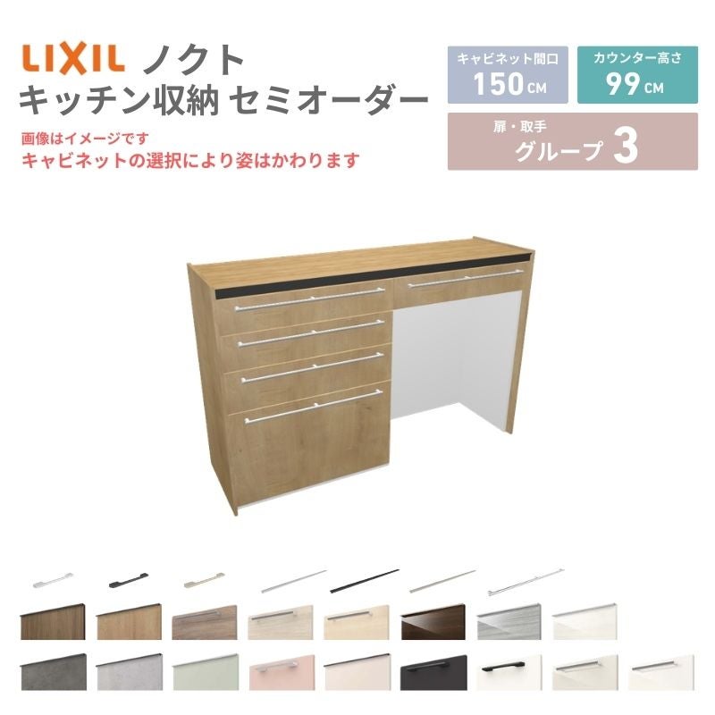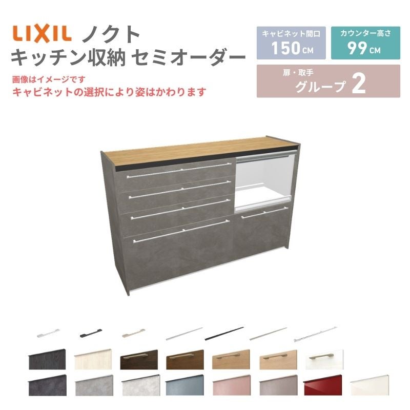 リクシル ノクト キッチン収納 キッチンカウンター 壁付型 爆買 26年新モデル カップボード ノクト 食器棚 間口150cm(75+75)cm 壁付型 ハイフロアキャビネット カウンター高さ99cm 奥行45cm W1500mm LIXIL リクシル グループ3