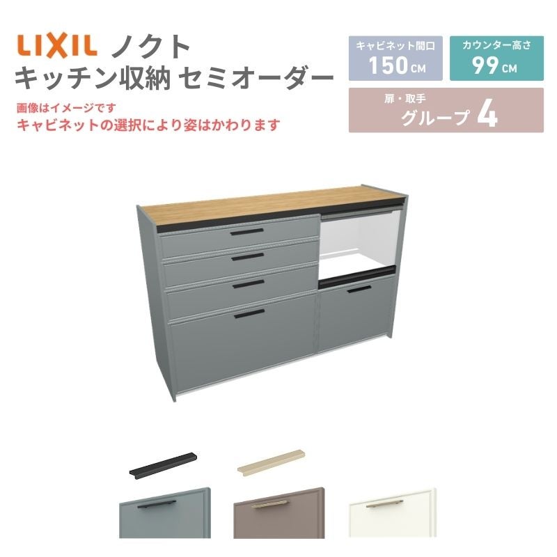 リクシル ノクト キッチン収納 キッチンカウンター 壁付型 爆買 26年新モデル カップボード ノクト 食器棚 間口150cm(90+60)cm 壁付型 ハイフロアキャビネット カウンター高さ99cm 奥行45cm W1500mm LIXIL リクシル グループ4