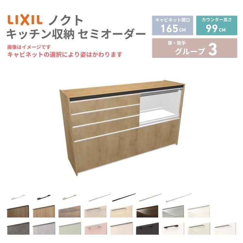 リクシル ノクト キッチン収納 キッチンカウンター 壁付型 爆買 26年新モデル カップボード ノクト 食器棚 間口165cm(90+75)cm 壁付型 ハイフロアキャビネット カウンター高さ99cm 奥行45cm W1650mm LIXIL リクシル グループ3