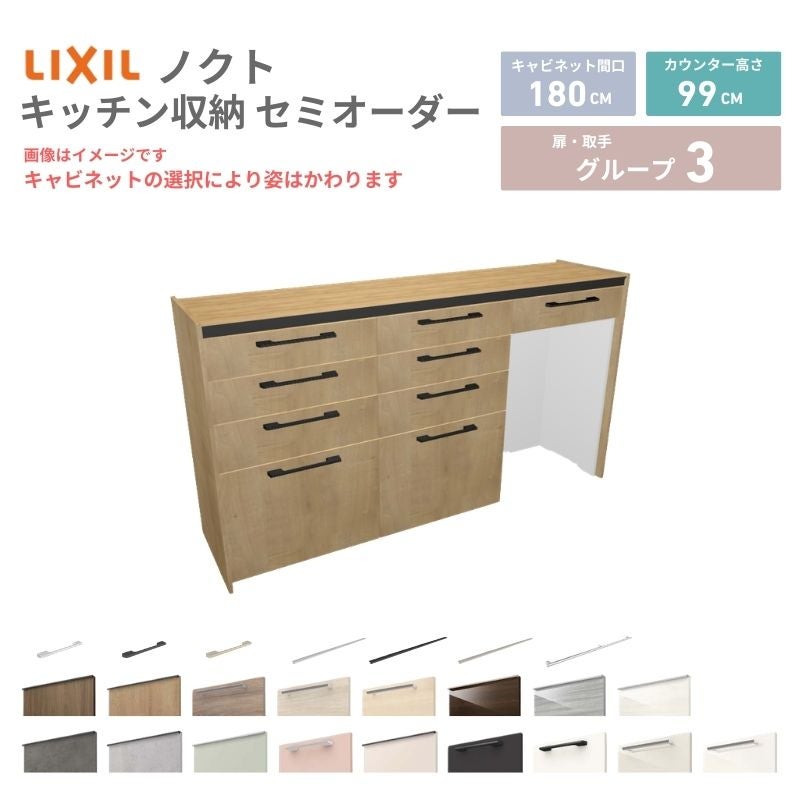 リクシル ノクト キッチン収納 キッチンカウンター 壁付型 爆買 26年新モデル カップボード ノクト 食器棚 間口180cm(60+60+60)cm 壁付型 ハイフロアキャビネット カウンター高さ99cm 奥行45cm W1800mm リクシル グループ3