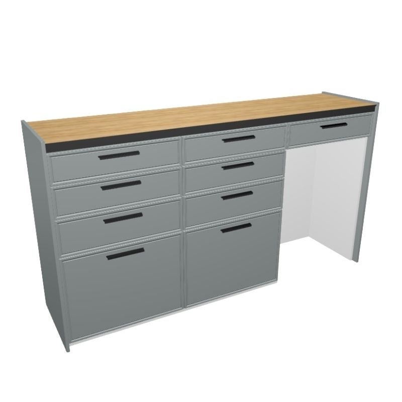 シンク・調理台・コンロ台がL字型に配したものです。作業スペースを広く取れ、コーナーなどには物が置ける余裕があります。