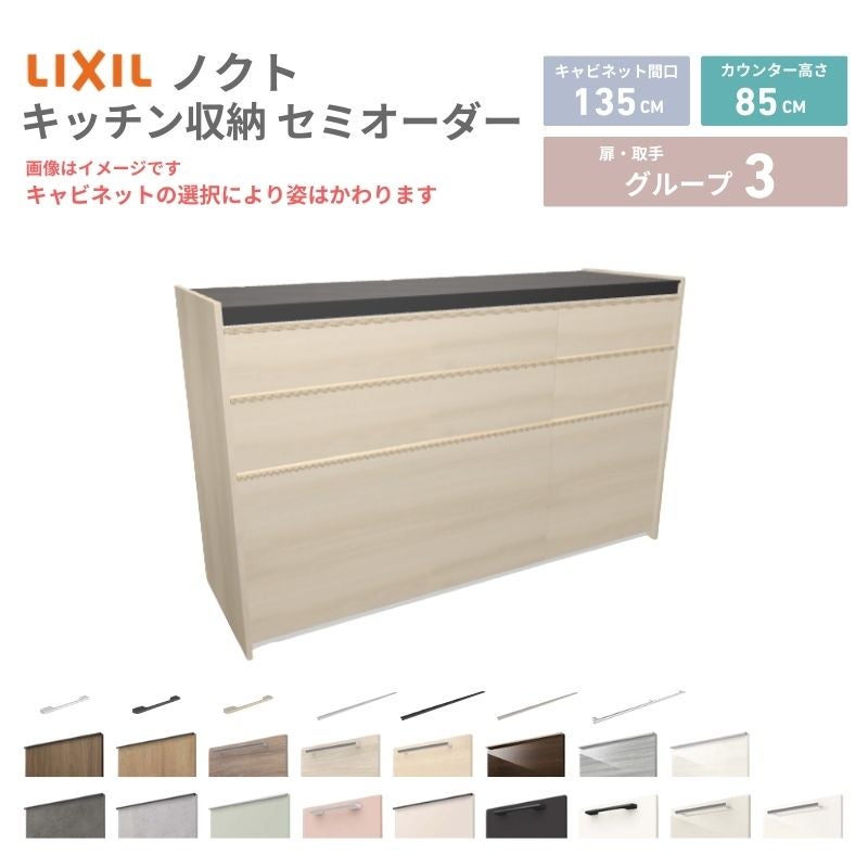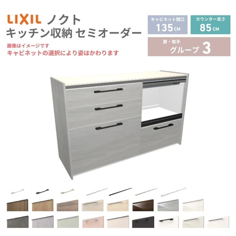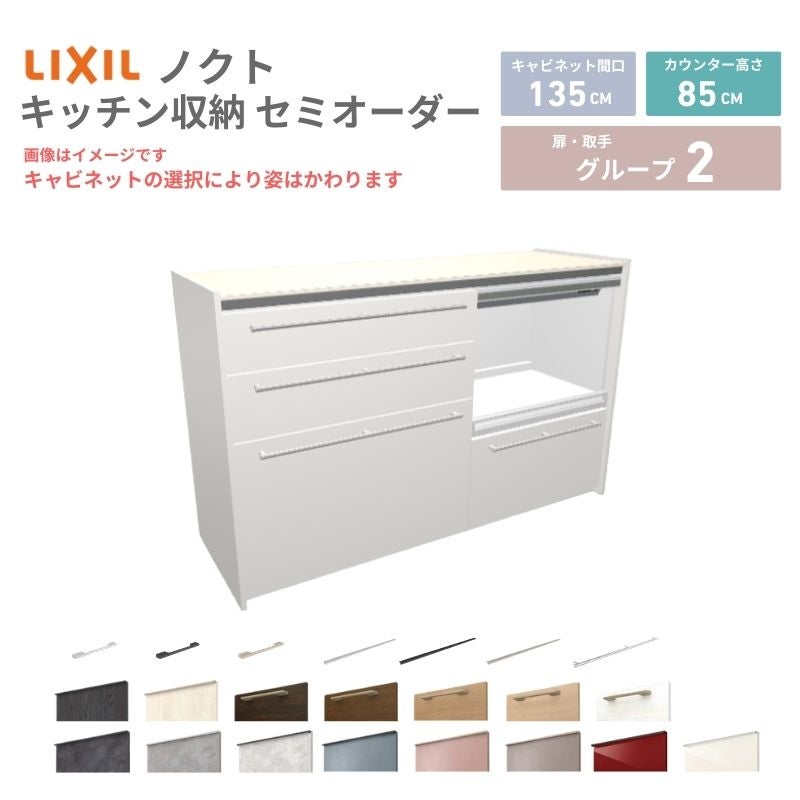 リクシル ノクト キッチン収納 キッチンカウンター 壁付型 爆買 26年新モデル カップボード ノクト 食器棚 間口135cm(75+60)cm 壁付型 フロアキャビネット カウンター高さ85cm 奥行45cm W1350mm LIXIL リクシル グループ3