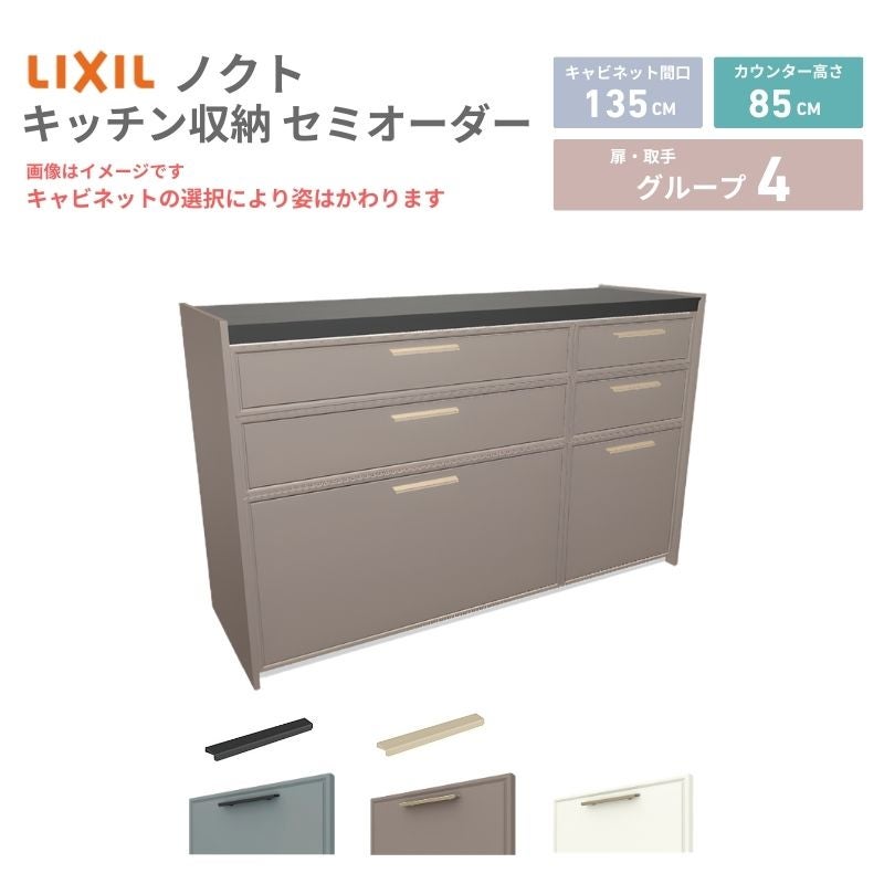 リクシル ノクト キッチン収納 キッチンカウンター 壁付型 爆買 26年新モデル カップボード ノクト 食器棚 間口135cm(75+60)cm 壁付型 フロアキャビネット カウンター高さ85cm 奥行45cm W1350mm LIXIL リクシル グループ4