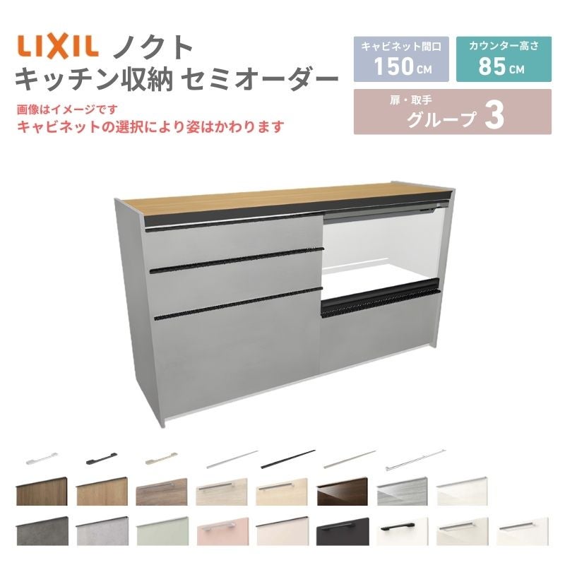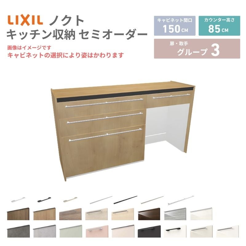 リクシル ノクト キッチン収納 キッチンカウンター 壁付型 爆買 26年新モデル カップボード ノクト 食器棚 間口150cm(90+60)cm 壁付型 フロアキャビネット カウンター高さ85cm 奥行45cm W1500mm LIXIL リクシル グループ3