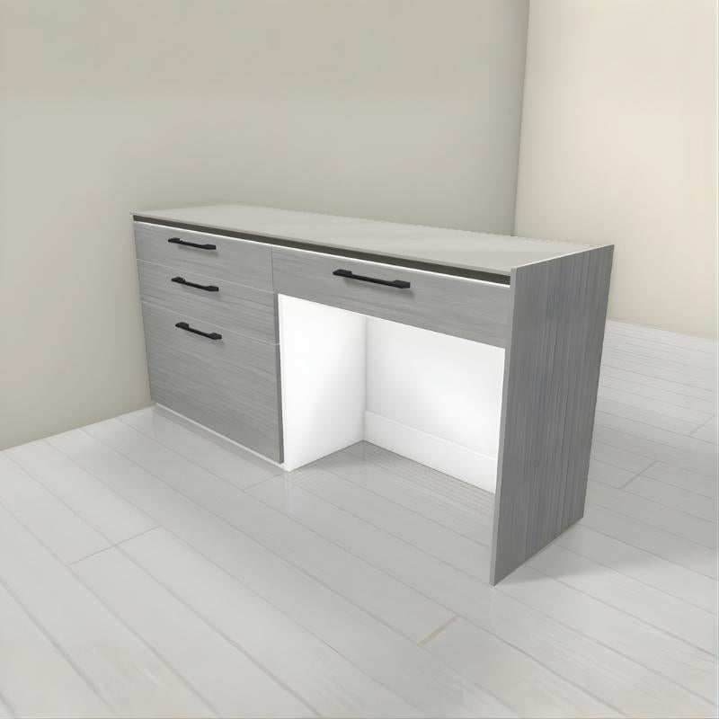 キッチンの前面が壁に面したもので、調理中は作業に専念できるスタイルです。 限られたスペースにキッチンを設置する場合は、スペース効率の良いキッチンとなります。