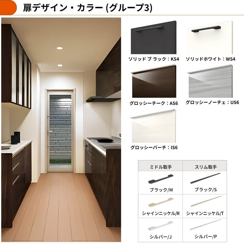 シンク・調理台・コンロ台が一列になったものです。シンプルな形状で壁付け・センターどちらも対応でき、リフォームで最も人気が高い形状です。