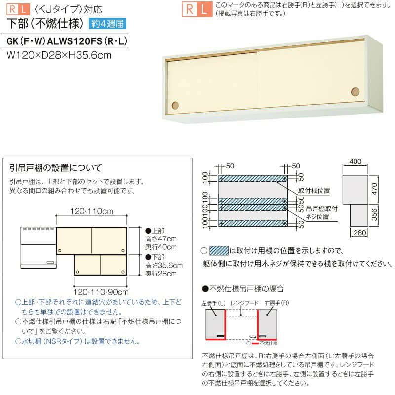 他の画像を見る セクショナルキッチン 吊戸棚 公団 住宅 家庭用 リフォーム 交換 キッチン 引吊戸棚 下部(不燃仕様) W1200mm 間口120cm GK(F-W)ALWS120FS(R-L)※【KJタイプ】対応 セクショナルキッチン LIXIL リクシル 木製キャビネット GKシリーズ お客様確認後30営業日以内で発送 メーカー希望価格 ¥ 56,980 のところ 当店通常価格 ¥ 27,900 税込 会員特別価格 ¥ 27,000 税込 (0) 詳細を見る お気に入りに登録する