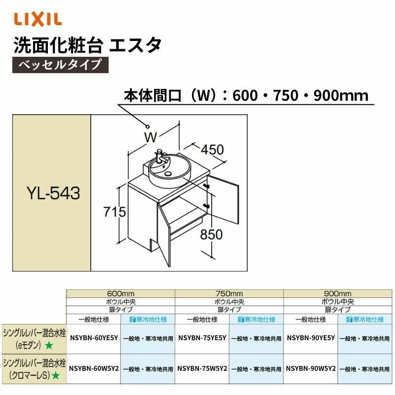 他の画像を見る 洗面化粧台エスタ ベッセル システム カウンター下 間口W900~1200mm ボウル片寄せ セミオープン 洗面器(YL-543)扉600mm LF-Y543-W340SY(PS)MB2/BW1 LIXIL/INAX リクシル 化粧台 リフォーム DIY お客様確認後21営業日以内で発送 メーカー希望価格 ¥ 311,300 のところ 当店通常価格 ¥ 137,530 税込 会員特別価格 ¥ 133,400 税込 (0) 詳細を見る お気に入りに登録する