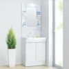 鏡には長寿命なLEDランプを標準搭載。収納は背の高いボトルも入る「開き扉タイプ」で、散らかりがちな洗面所もスッキリ片付きます。