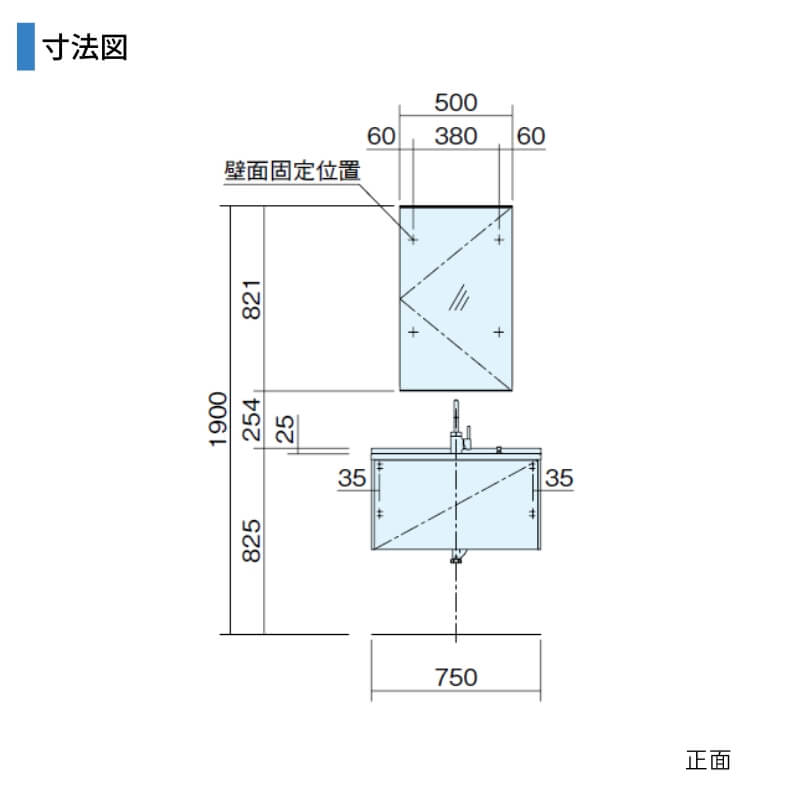 ■ ミラー:収納付1面鏡(ミドルパネル)本体と同柄 照明なし