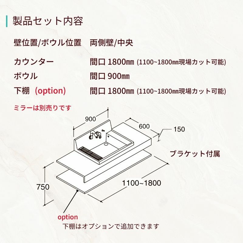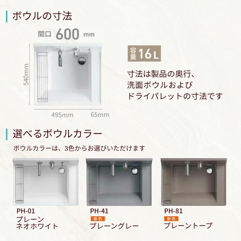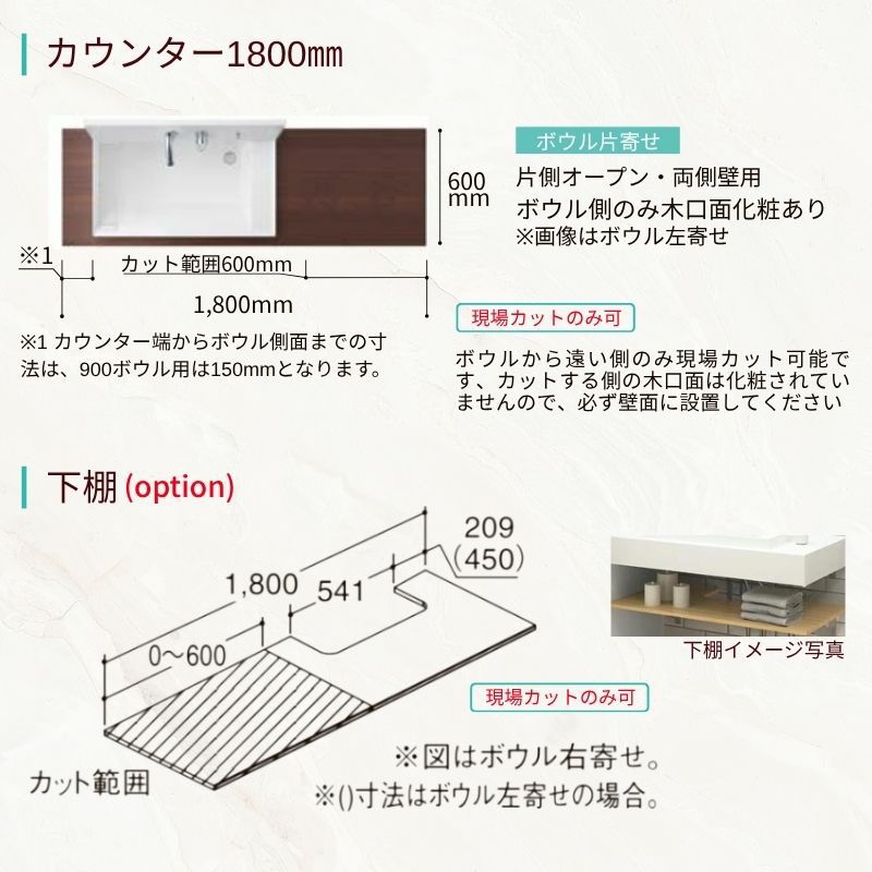 他の画像を見る 豊富なカラーでスタイリッシュで使いやすいカウンター洗面 洗面化粧台 カスタムバニティ カウンター間口900~1800mm 壁位置 両側壁/片側オープン 現場カット可 ボウル間口600mm ボウル位置右または左 シャワー水栓 LIXIL 受注生産1ヶ月以内で発送 メーカー希望価格 ¥ 228,250 のところ 当店通常価格 ¥ 108,550 税込 会員特別価格 ¥ 105,290 税込 (0) 詳細を見る お気に入りに登録する