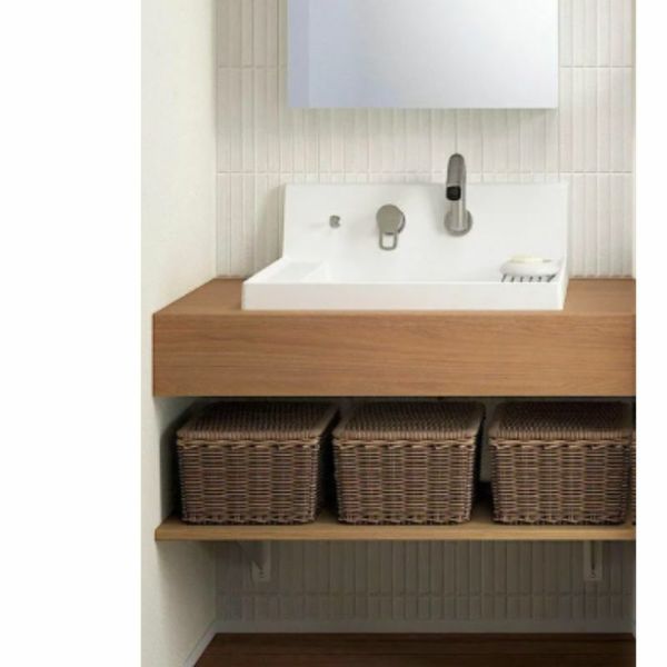 洗面化粧台 カスタムバニティ カウンター間口800~1800mm 壁位置 両側壁 現場カット可 ボウル間口600mm ボウル位置中央 シャワー水栓 リクシル LIXIL 造作風