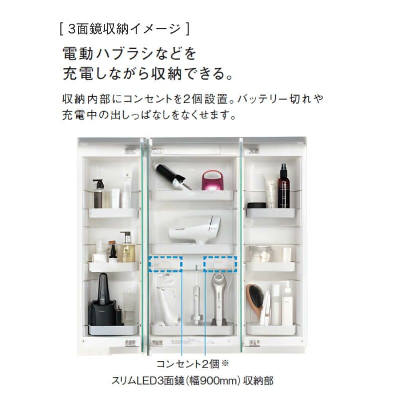 身支度、家事をスムーズにひろびろボウル&くるくる水栓。 賢い収納アイテムですっきりと3面鏡トライアレンジ、扉裏ポケット。 底が広くて平らな広々ボウル。 使いたい位置にくるりと回せるくるくる水栓。 かわいいおしゃれなデザインで人気の洗面化粧台、コンパクトドレッサーです。