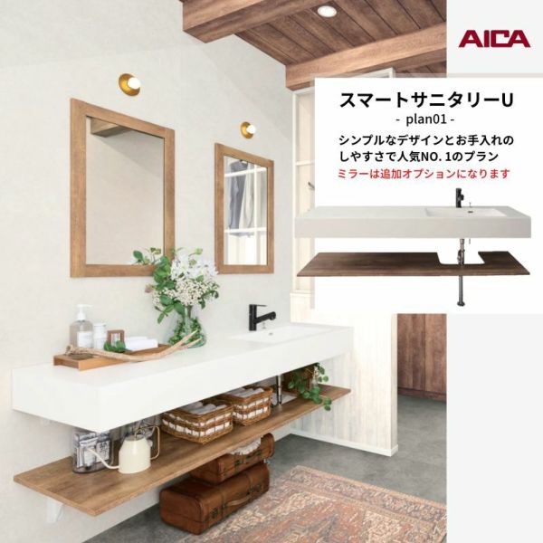 洗面化粧台 スマートサニタリーU Plan01 W1680×D550×H1900mm 造作 洗面カウンター シャワー付ホース給水混合栓 アイカ工業 AICA 洗面台 おしゃれ リフォーム
