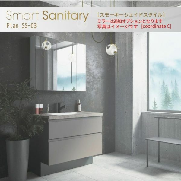 洗面化粧台 スマートサニタリー Plan SS-03 W900×D530×H1900mm スモーキーシェイド シャワー付混合栓 アイカ AICA 洗面台 おしゃれ リフォーム